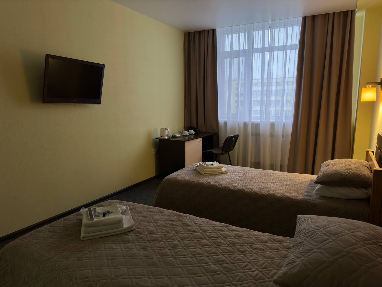 Уютный двухместный номер оснащен кабельным телевидением, IP-телефонией, кондиционером, холодильником, имеется доступ к бесплатному беспроводному интернету. Ванная комната порадует Вас просторной душевой кабиной, феном, набором необходимых банных принадлежностей. Для комфортного проживания Вы можете воспользоваться стиральной машиной, сушилкой для белья, утюгом, а также набрать горячую воду. Для детей предоставляется детский стульчик, подставка под умывальник, сиденье на унитаз.